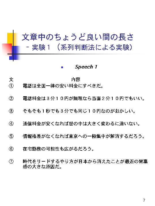 被験者が考える文章のまとまりを調べました。