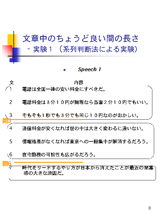 ほとんどの被験者がこのようなまとまりでこの文章を捉えていました。
